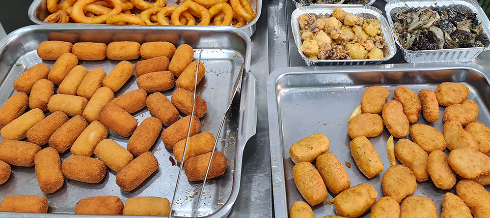 8 CROQUETAS DE JAMON O BACALAO Y CALAMAR A LA ROMANA